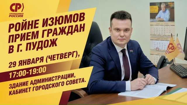 Ройне Изюмов проведет личный прием граждан в Пудоже. Встреча пройдет в четверг, 29 января, вместе с председателем городского совета Ильей Гашковым.